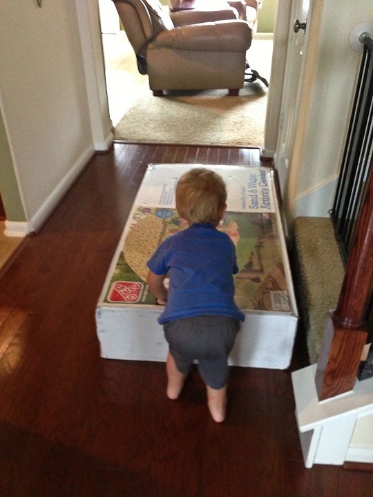 I'll start with Friday afternoon because I consider that the weekend. I ordered a water/ sand table for Stephen and we got it Friday. I started pushing it to the living room so I could put it together, but Stephen quickly took over.